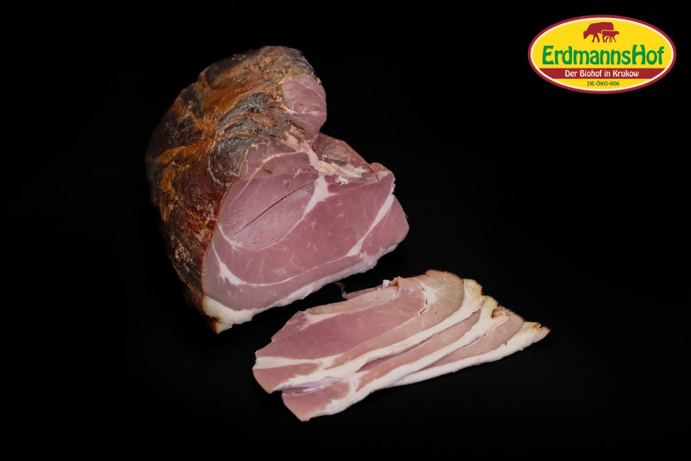 Bioland Schweinefleisch*, Meersalz, Gewürze ohne Allergene*, Buchenrauch. *kbA