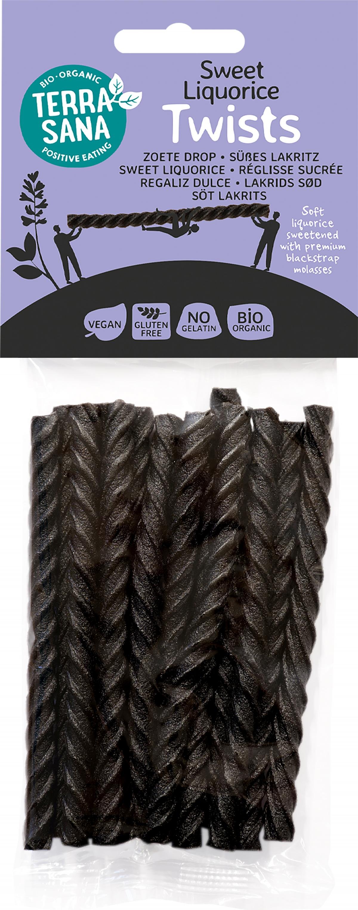 Twists sind die bekannten, gedrehten Lakritzstangen und seit Jahrzehnten ein Klassiker im Snackregal. Eine reine Lakritz-Sorte, die außer der nahrhaften schwarzen Zuckerrohrmelasse und Süßholzwurzelextrakt nur noch wenige Zutaten enthält. Das weiche Lakritz lässt sich leicht auseinanderziehen und durchbeißen. Twists enthalten keine tierischen Zutaten und statt Weizenmehl wird Reismehl verwendet. Was du isst, ist also 100% vegan und glutenfrei! Probiere auch die anderen 13 Lakritz-Sorten aus!