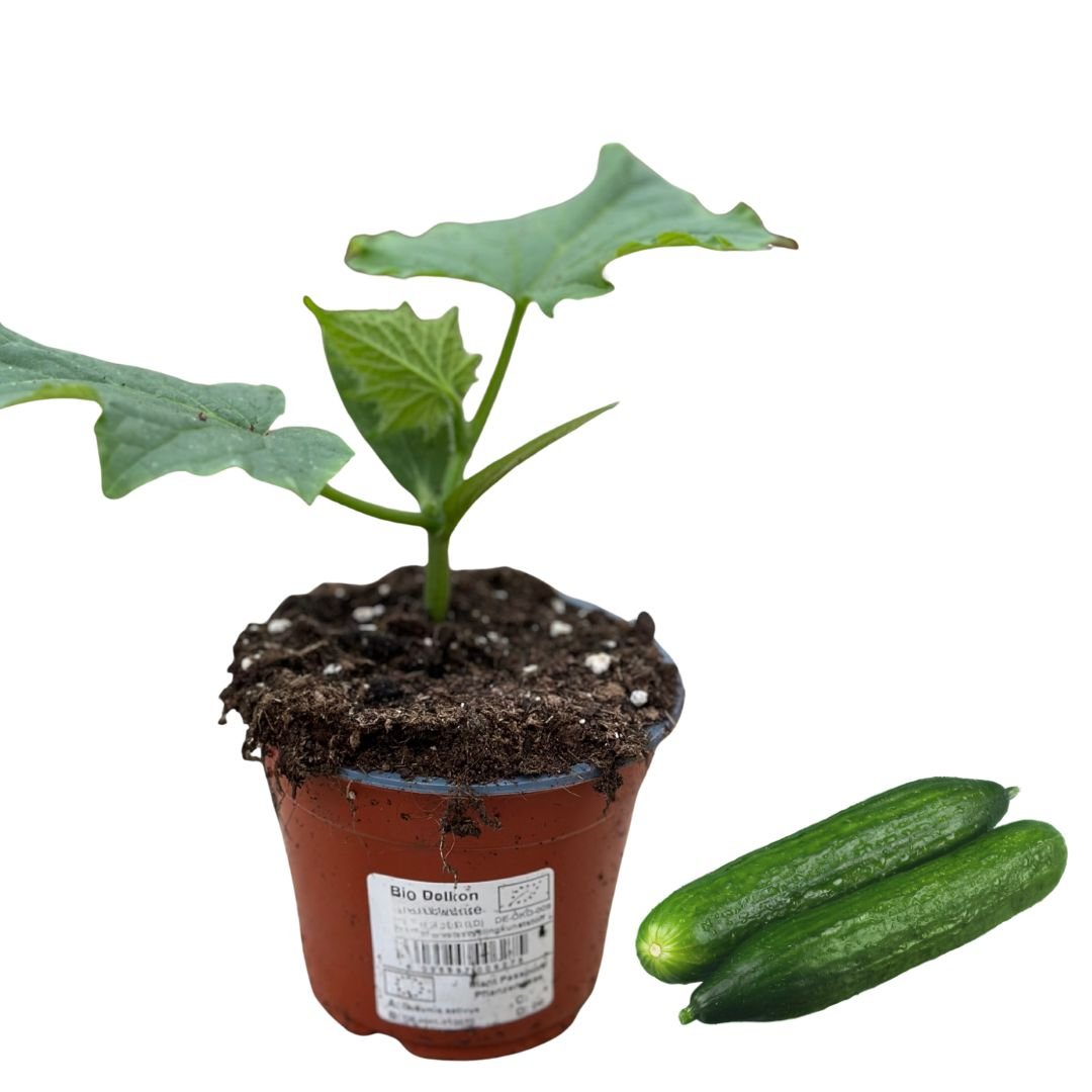 Pflanze die Jungpflanze an einen warmen, sonnigen und geschützten Standort in lockere, nährstoffreiche Erde und gib ihr eine Rankhilfe. Regelmäßig und gleichmäßig gießen, gelegentlich düngen; nicht austrocknen lassen, Staunässe vermeiden und keine kalten, zugigen Plätze wählen, da Gurken sehr wärmeliebend sind.