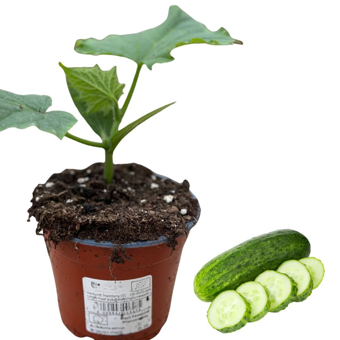 Pflanze die Jungpflanze an einen warmen, sonnigen und geschützten Standort in lockere, humusreiche Erde und gieße regelmäßig, da Gurken einen hohen Wasserbedarf haben. Nicht austrocknen lassen, Staunässe vermeiden und keine kalten oder zugigen Standorte wählen, damit die Pflanzen kräftig wachsen und viele Früchte bilden.